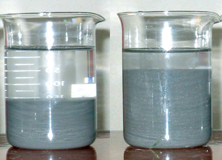 添加PCAS前后黃泥和粉煤漿灰懸浮效果添加PCAS后壘積效果濟(jì)二煤礦注漿站